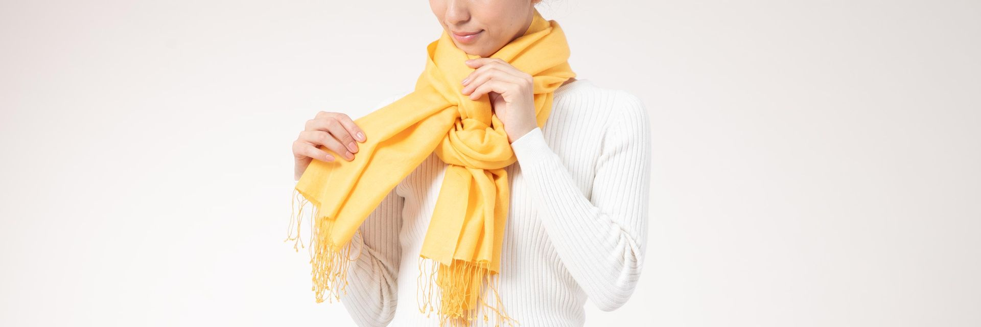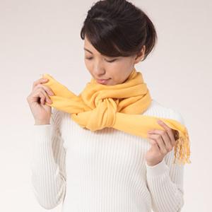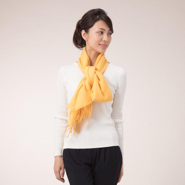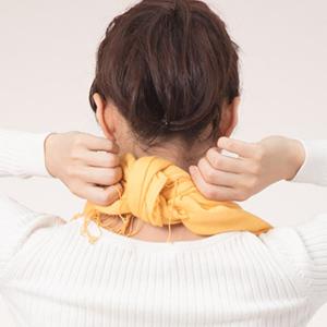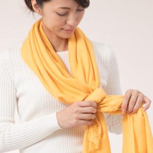 Tying it tightly not only increases the cold protection effect, but also adds volume and elegance. If you have a lightweight scarf, it goes well with a plain top in spring and summer. This is a basic way to tie a scarf that can be worn in any scene, season, or scarf material. It goes well with a neat outfit.
